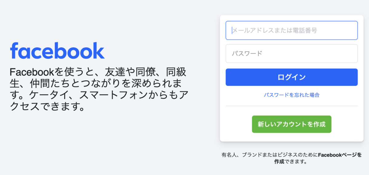Facebookアカウントもしくは企業ページを作成