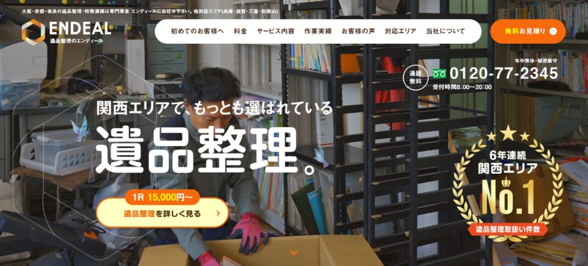 エンディールは、関西エリアで遺品整理取扱い件数No.1の遺品整理・特殊清掃業者です。地名をはじめとする多数のキーワードで上位表示を獲得しています。