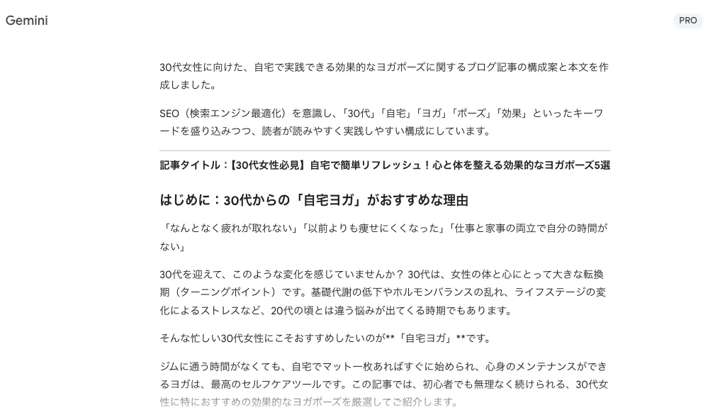 Geminiはキーワードだけでなく、ターゲット層やコンテンツの目的に合わせたタイトルを提案してくれます。