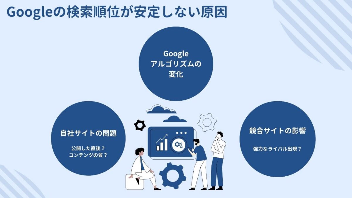 適切なSEO対策を実施していても、アルゴリズムの変動により日々、検索順位が変動します。しかし、予想以上に検索順位が安定しないケースもあるでしょう。