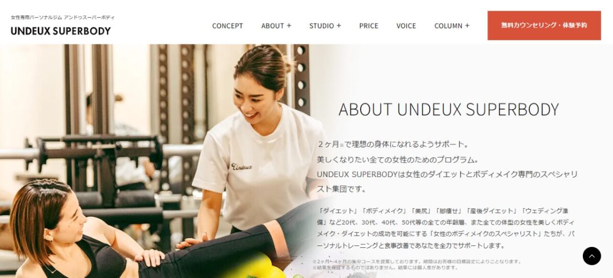 UNDEUX SUPERBODYは、女性専用のパーソナルジムです。競合の多いビッグキーワードをはじめ、多数のキーワードで上位表示を獲得しています。