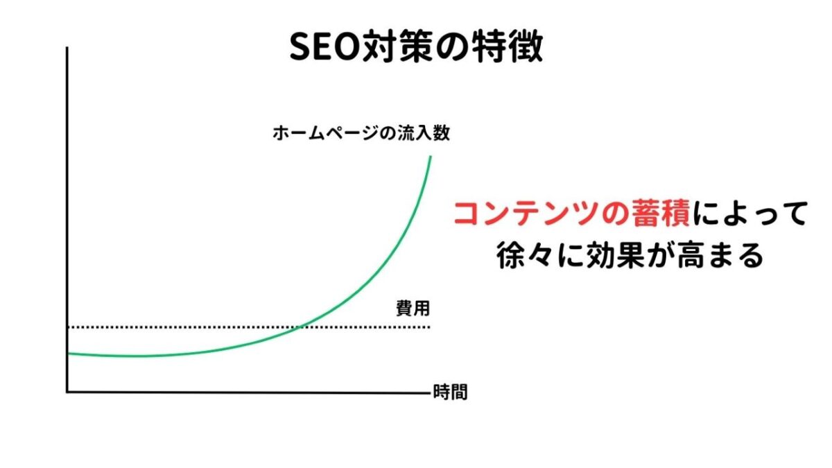 SEO対策によってホームページが上位に表示されると、費用を投じ続けなくても中長期的に集客効果が持続します。