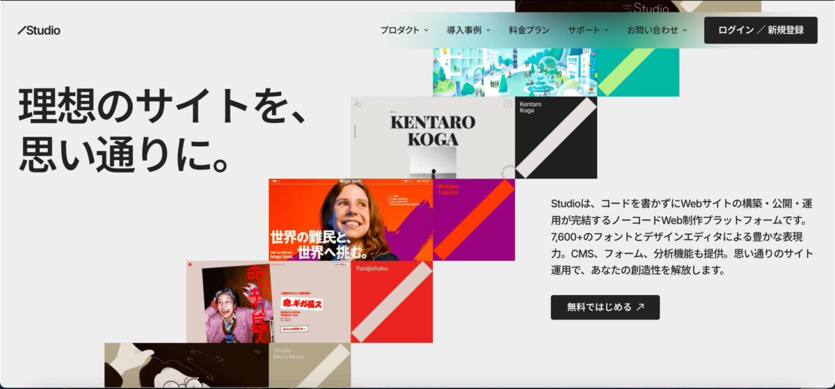 LP(ランディングページ)のように単一ではなく、複数のページを使った本格的なサイトを作りたいのであればStudioが向いています。