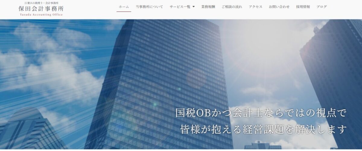 保田会計事務所は、江東区を拠点とする税務会計・コンサルティングのプロ集団です。地名はもちろん、会計事務所と相性のよい多くのロングテールキーワードで上位表示を獲得しています。